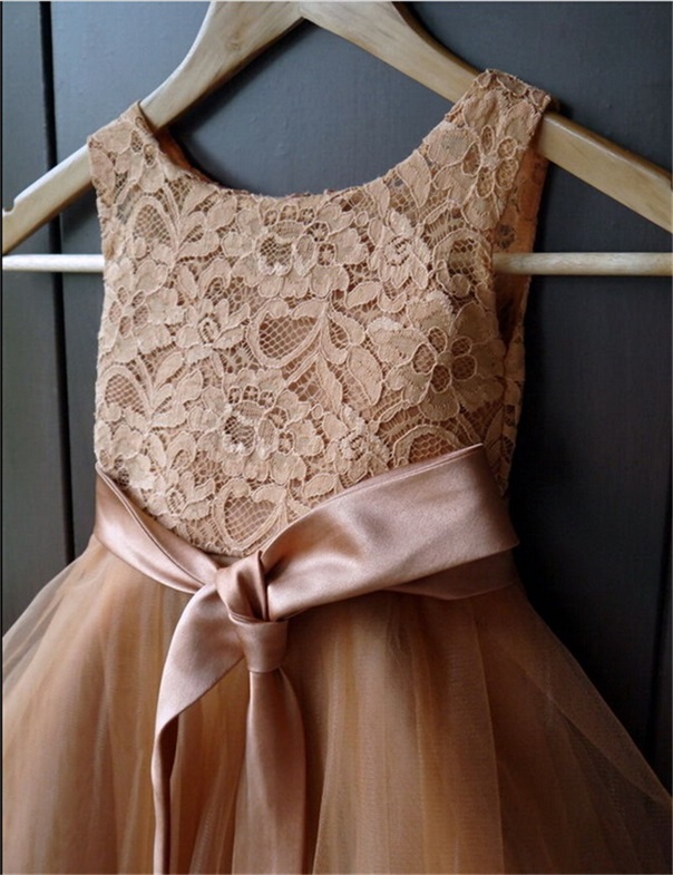 Champagne Lace Tulle Flower Girl Dress Kid's Party Prom White First Communion Pageant Clothing for Baby Skirt D020