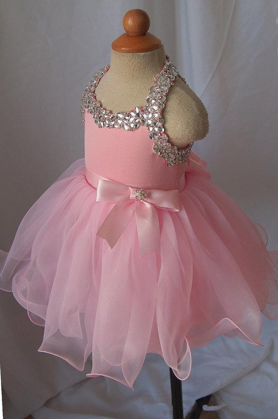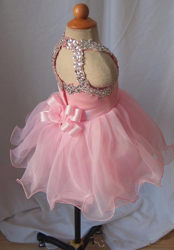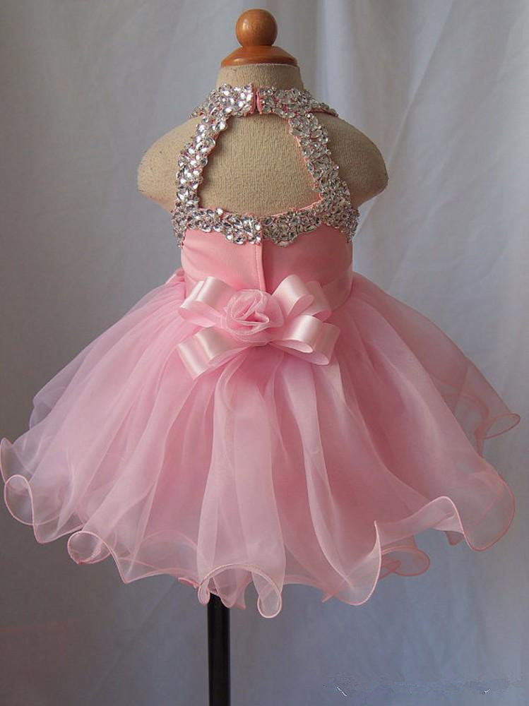 Pink Beads Flower Girl Dress Kid's Party Prom White First Communion Pageant Clothing for Baby Skirt D024