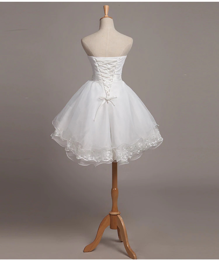 Lovely White Lace and Organza Short Graduation Dress Prom Dress, Short Teen Formal Dresses