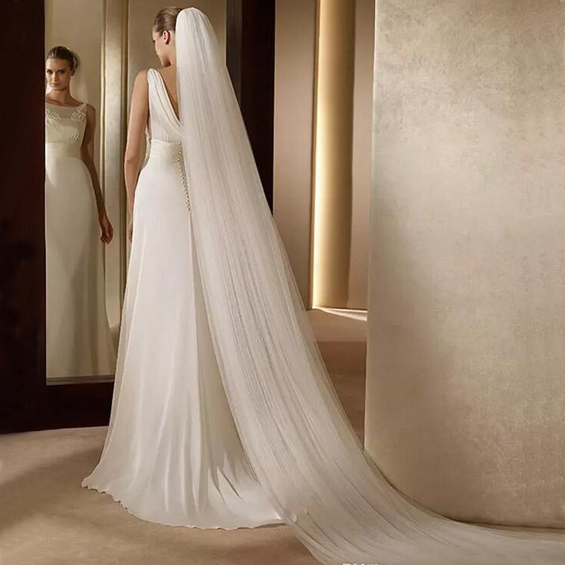 Elegant Cathedral Wedding Veil 3 Meters Long Soft Bridal Veils With Comb 2 layer Ivory White Red Color Bride Wedding Accessories