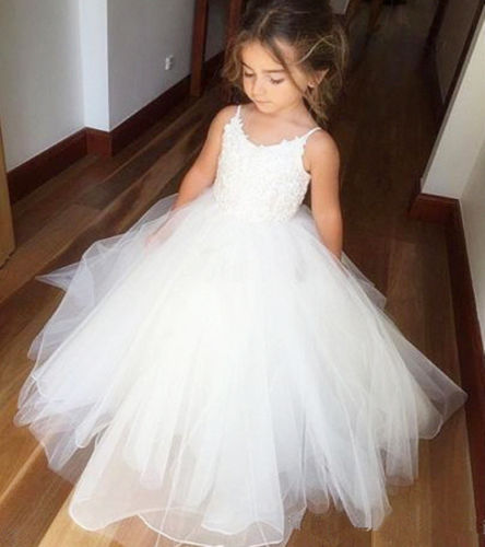 Tulle Flower Girl Dress Brithday Princess Long Girls Pageant Dresses Kids Prom Bridesmaid Puffy Kids Ball Gown
