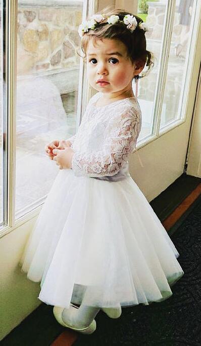 Cute Lace Flower Girl Dress with Bow Princess Girls Pageant Dresses Kids Prom Puffy Tulle Ball Gown