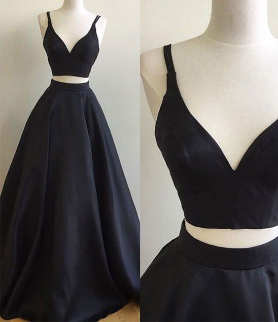 Two PCS Black Women Prom Dress Evening Dress Formal Occasion Party Dress