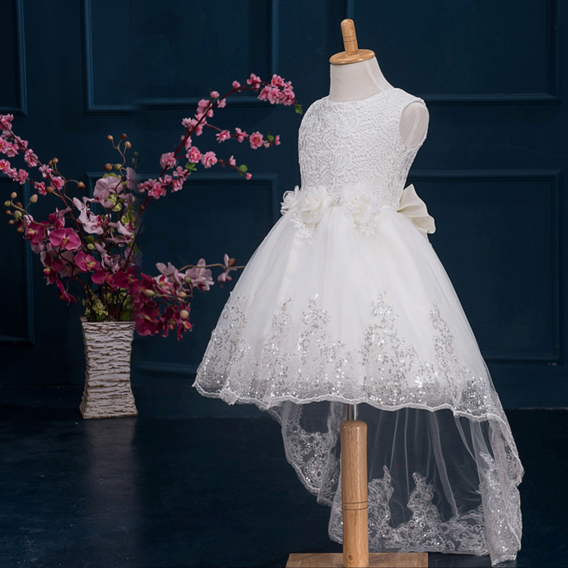 Hi-Lo Lace Flower girl Tulle Cute New Brithday Party Baby Little Kids Flower Girl Dress Princess Girls Pageant Dresses Kids Prom Puffy Ball Go