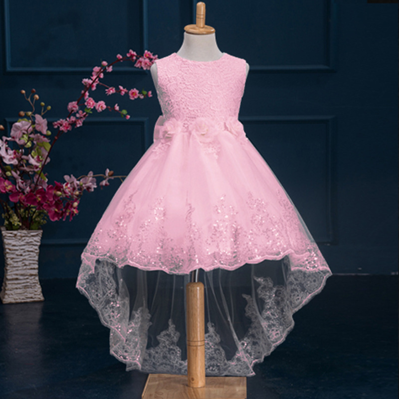 Pink Hi-Lo Lace Flower girl Tulle Cute New Brithday Party Baby Little Kids Flower Girl Dress Princess Girls Pageant Dresses Kids Prom Puffy Ball Go