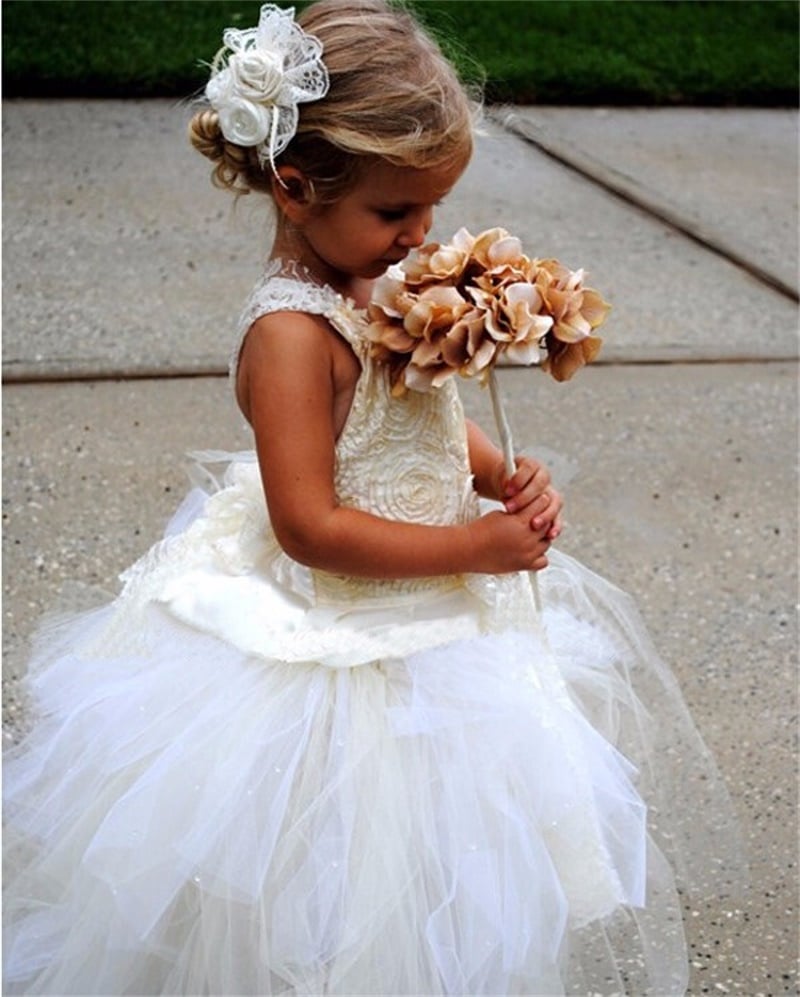 Cute Flower Girl Dress Lace Cute New Brithday Party Baby Little Kids Flower Girl Dress Princess Girls Pageant Dresses Kids Prom Puffy Ball Gow