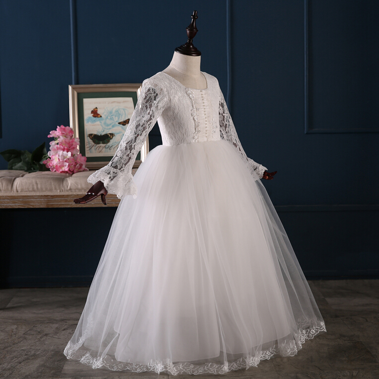 White Cute Flower Girl Dress Lace Cute New Brithday Party Baby Little Kids Flower Girl Dress Princess Girls Pageant Dresses Kids Prom Puffy