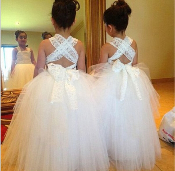 Tulle Kids Cute Flower Girl Dress Lace Cute New Brithday Party Baby Little Kids Flower Girl Dress Princess Girls Pageant Dresses Kids Prom Gown