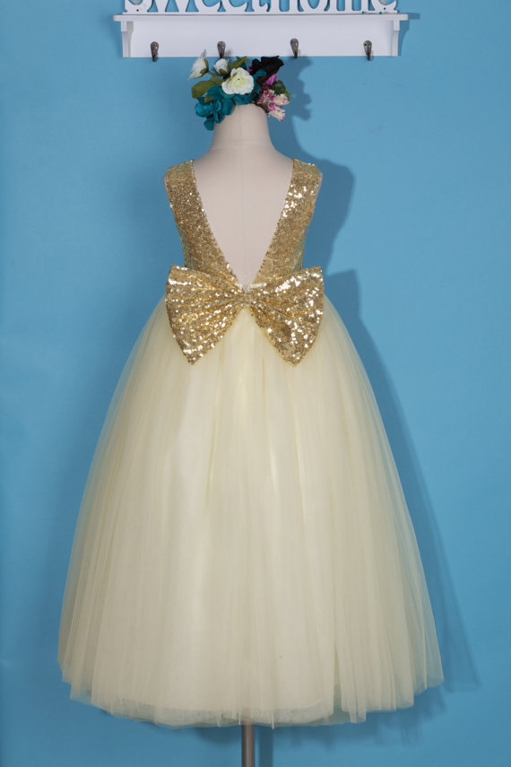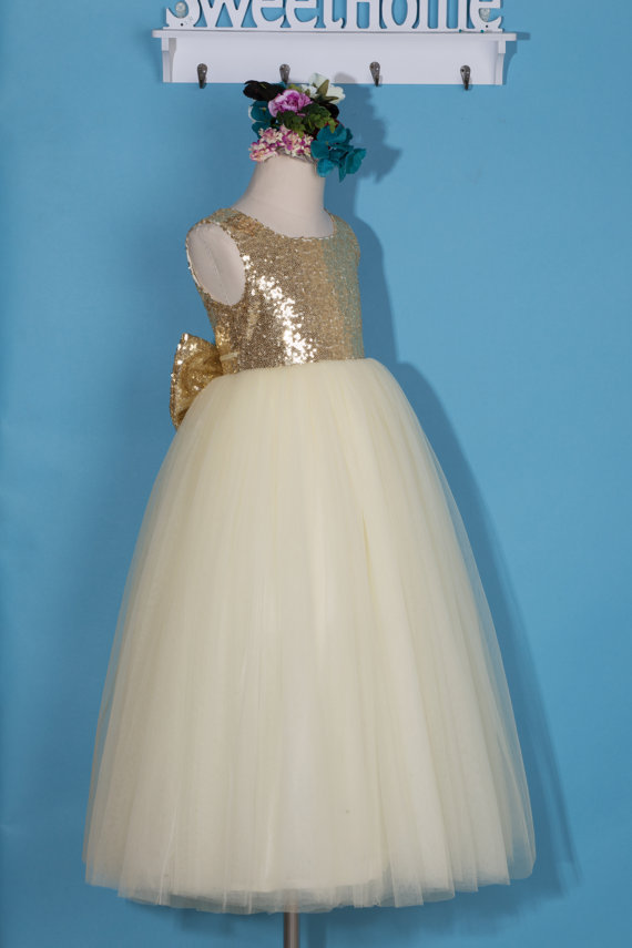 Ivory flower girl dress/Gold sequin girl dress/tulle flower girl dress/pageant dress/communion dress/flower girl dress for toddler girl