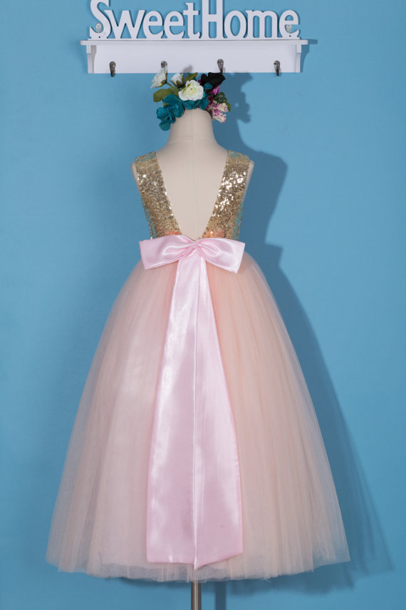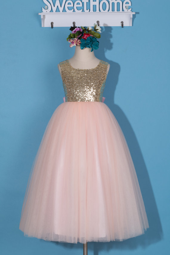 Pink flower girl dress/gold sequin flower girl dress/pink pageant dress/communion dress/pink tulle flower girl dress/junior bridesmaid dress
