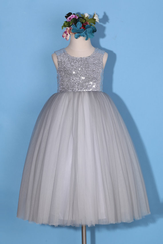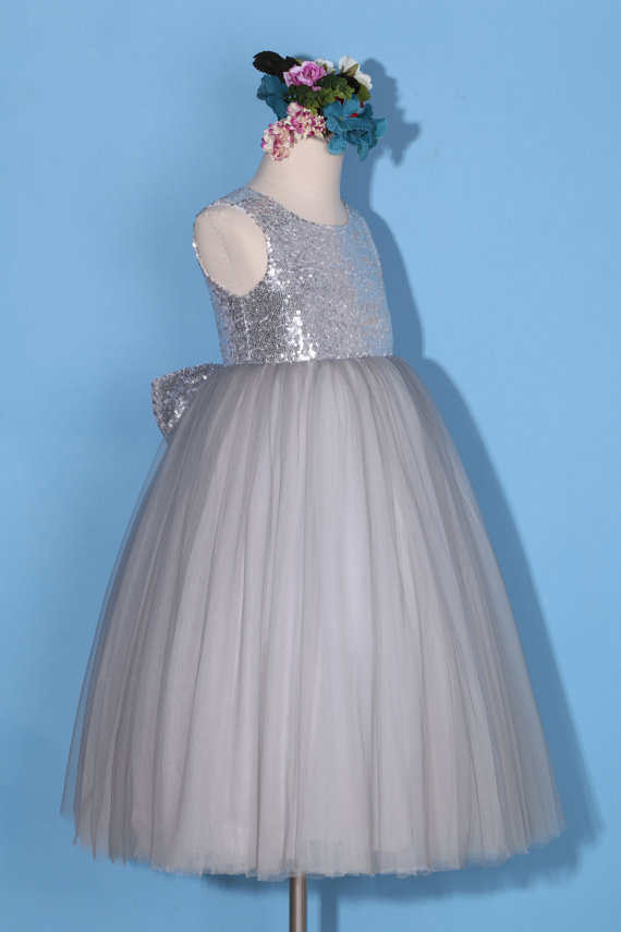 Flower girl dress/gray pageant dress/silver sequin dress/gray flower girl dress/silver gray dress/backless dress/gray tulle girl dress
