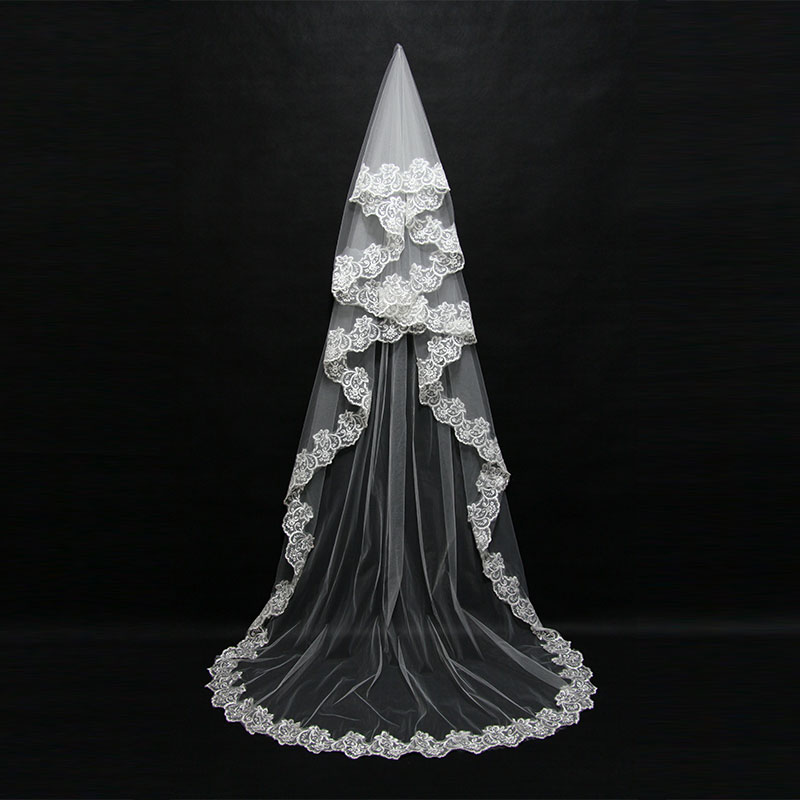 Hot Sale Lace Wedding Veil 3 Meter Long Cathedral With Comb One Layer Tull Appliques Women Bridal Veils High Quality