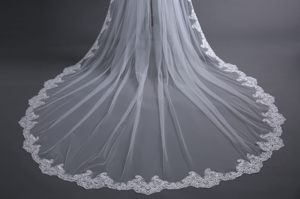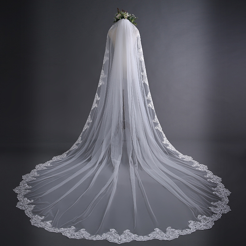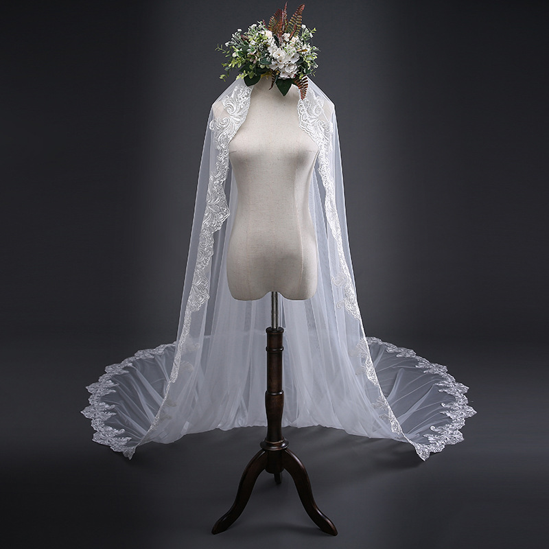 2019 Real Photos High Quality Lace Cathedral Handmade Lace edge Wedding Veil with Comb New Bridal Veil
