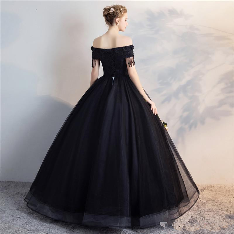 Black Off The Shoulder Wedding Dress Bridal Gown Prom Evening Dress