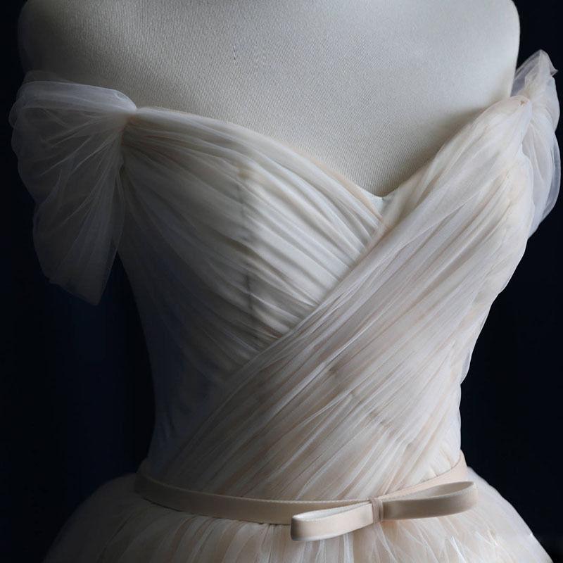 White and Champagne or Ivory and Champagne Off the Shoulder Princess Wedding Dresses Beach Bridal Gown Custom Size
