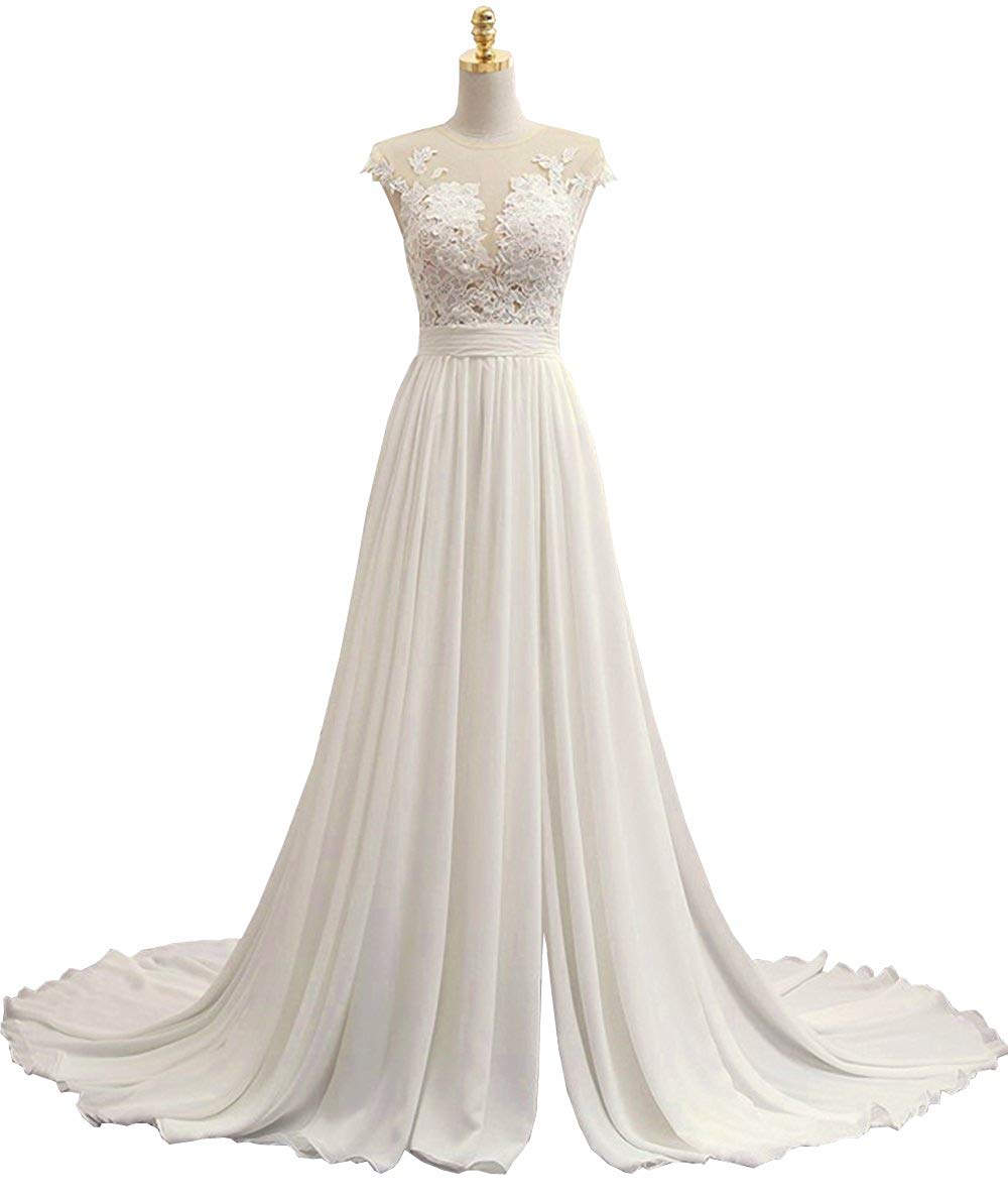 Women's Sexy A Line Chiffon Beach Wedding Dress Long Evening Dress Prom Gown