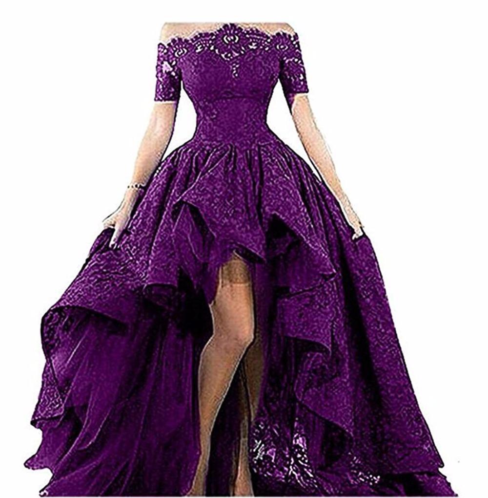 New Lace Strapless Off The Shoulder Short Sleeves High Low Prom Dresses Evening Gowns Vestido Longo Formal Occasion