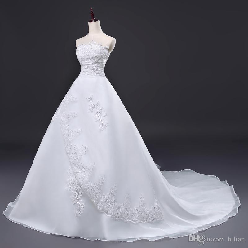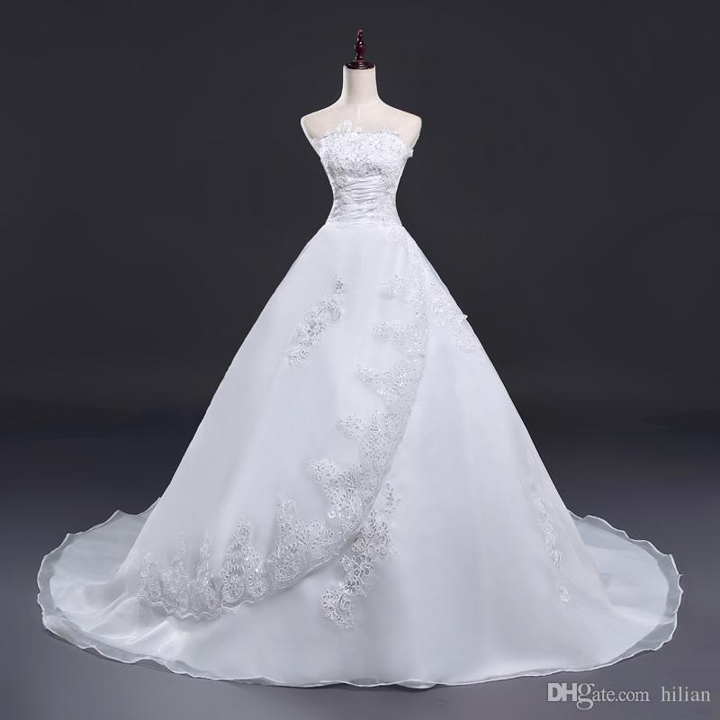 White/Ivory Strapless Organza Ball Gown Applique Wedding Dress Bridal Gown Custom Plus Size lace Up Back Wedding Formal Occasion