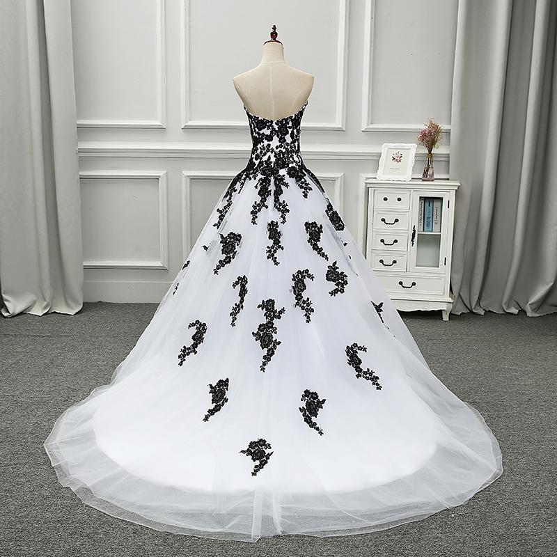 Robe De Mariage Elegant White and Black Wedding Dresses Appliqued Sweetheart Bridal Gowns Tulle Custom Made