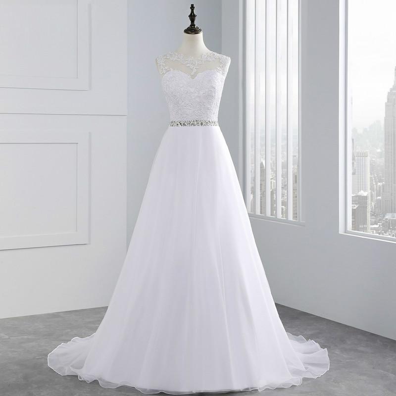 Long Cheap A Line Lace Beach Wedding Dress White Tulle Beading Organza Vestido De Noiva Appliques Plus Size Bride dresses