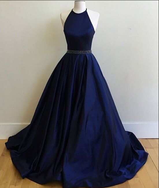 Halter Prom Dresses,Royal Blue Prom Dresses,Long Prom Dresses,Beading Prom Dresses,Backless Prom Dresses,Satin Prom Dresses,