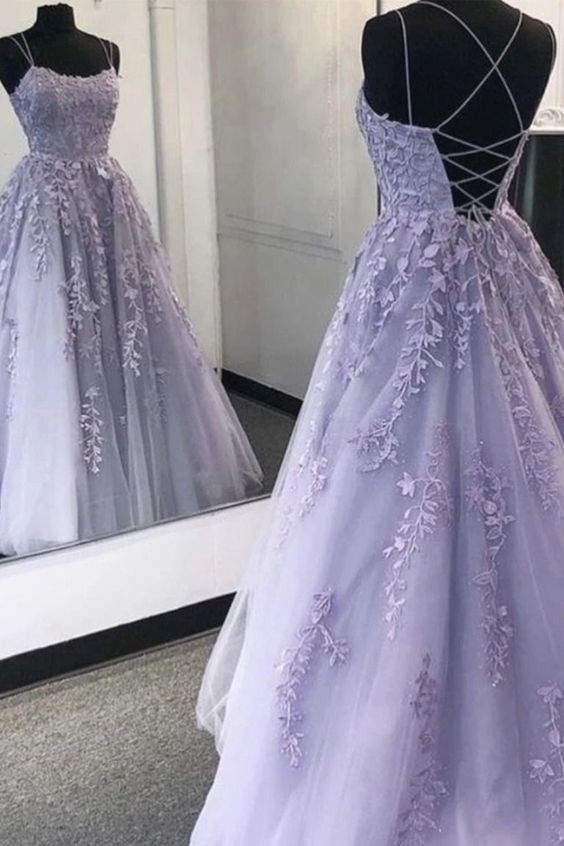 A Line Purple Strapless Tulle Lace Applique Long Wedding DressProm Dresses Elegant Evening Dresses Custom Size
