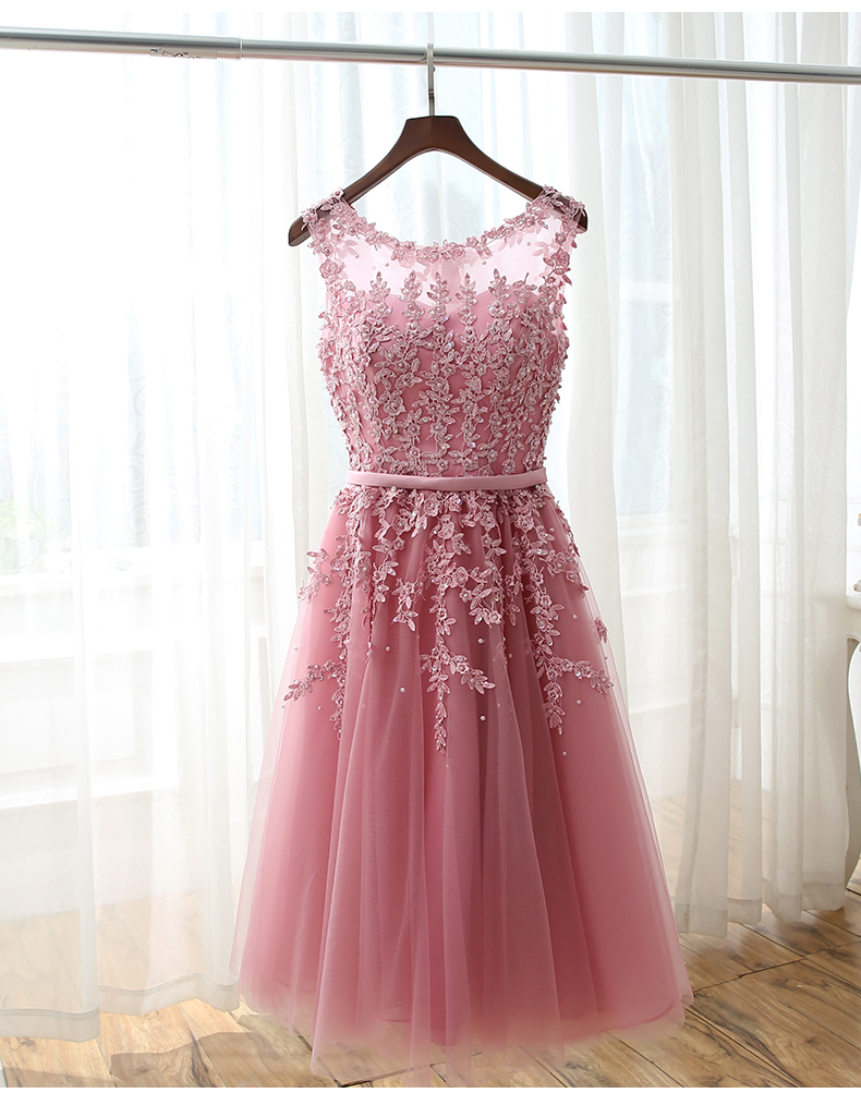 Pink White Tulle Lace Appqliue party Dress Prom Dresses Elegant Evening Dresses Custom Size
