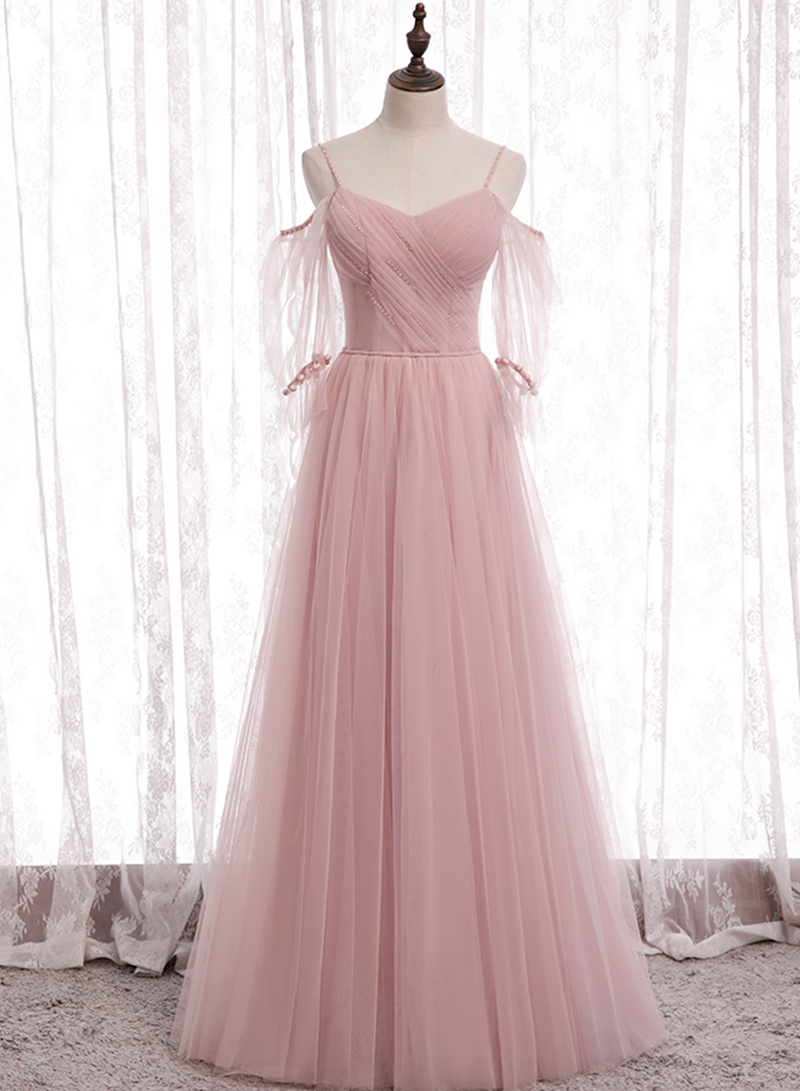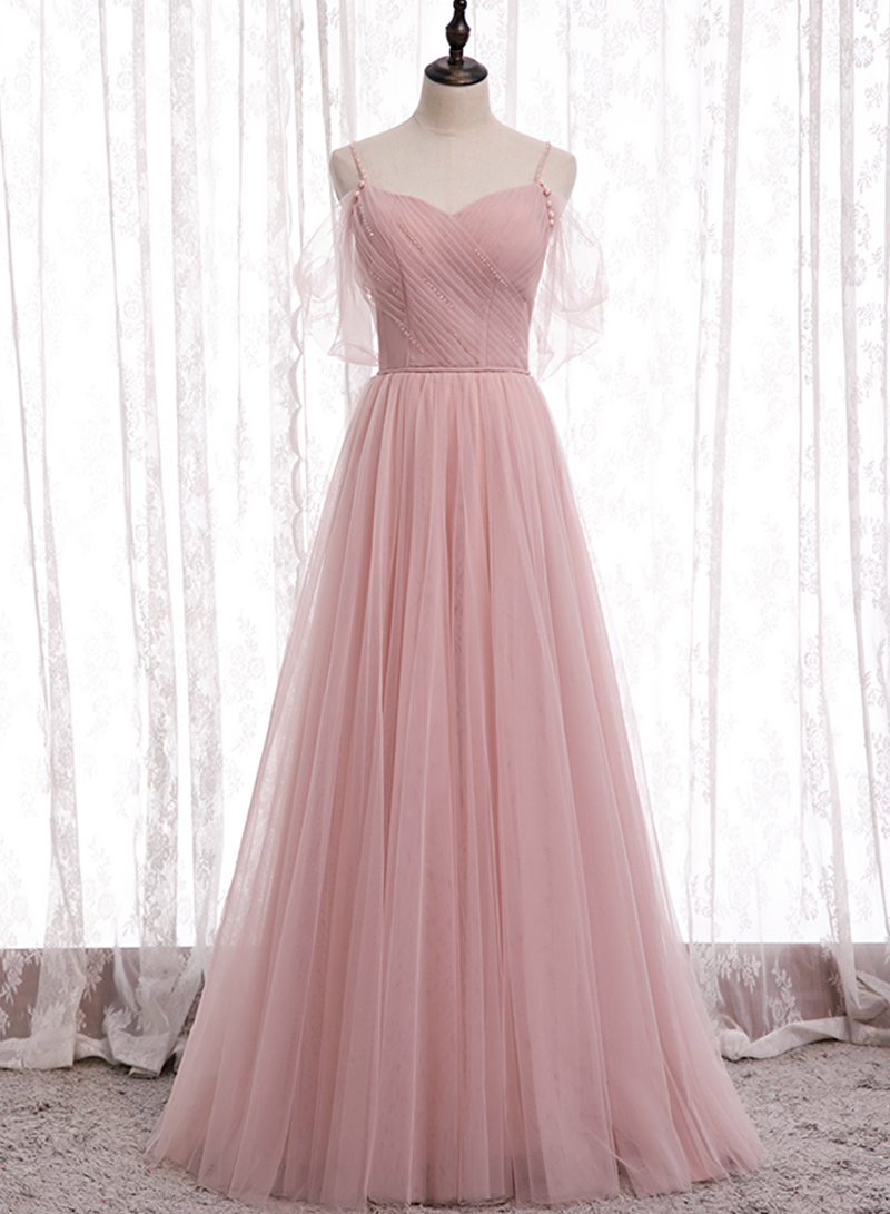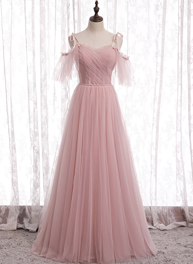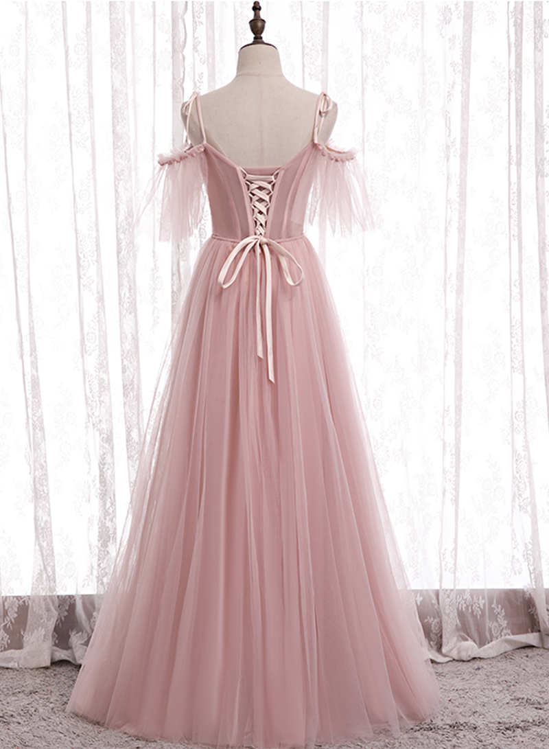 Pink A Line Tulle party Dress Prom Dresses Elegant Evening Dresses Custom Size