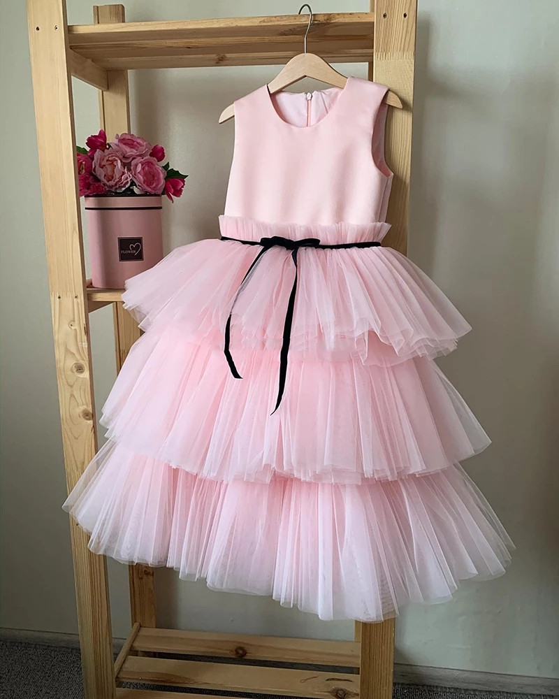 Pink Tulle New Style Flower Girl Dress Kid's Brithday Party Prom White First Communion Pageant Clothing for Baby Skirt D027