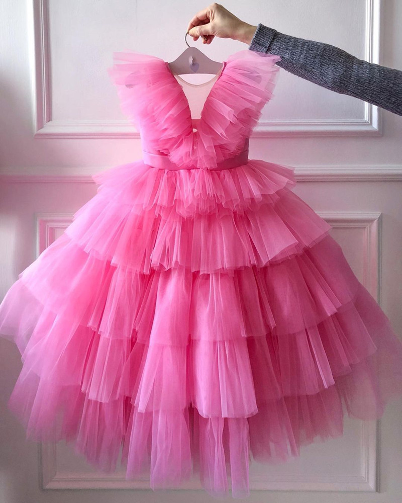 Real Photo Pink Tulle New Style Flower Girl Dress Kid's Brithday Party Prom White First Communion Pageant Clothing for Baby Skirt D030