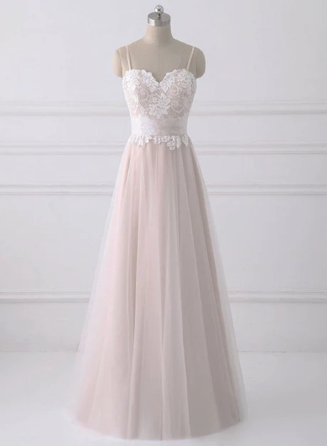 Pink Lace Top Sweetheart Straps A-line Tulle Prom Dress, Pink Formal Dress Evening Dress