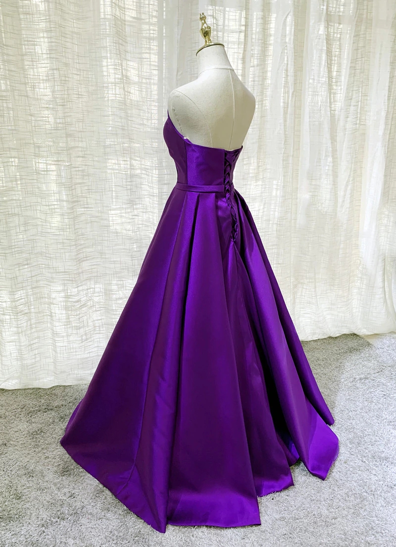 Purple Satin A-line Simple Floor Length Evening Dress Formal Dress, Dark Purple Prom Dresses