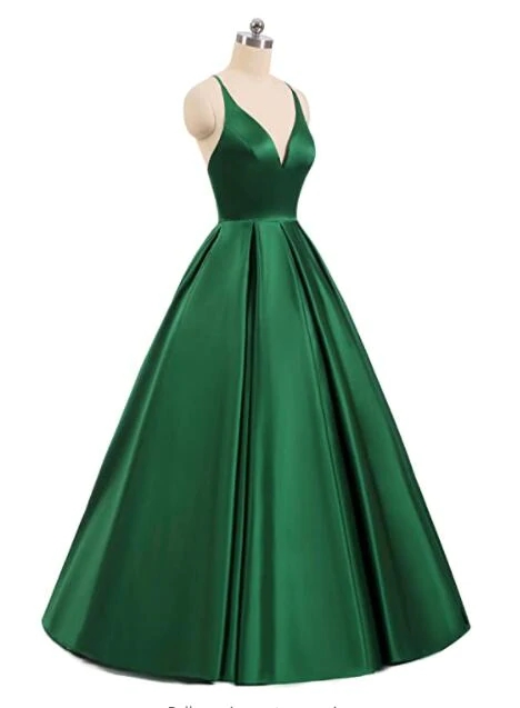 Charming Satin Cross Back Deep V-neckline Long Party Dress, Floor Length Evening Dress
