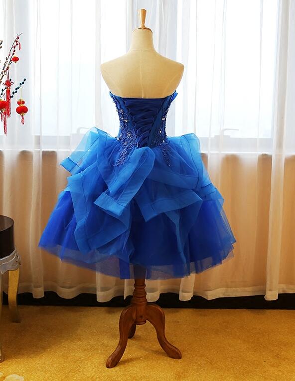 Beautiful Royal Blue Knee Length Party Dress with Applique, Short Prom Dress