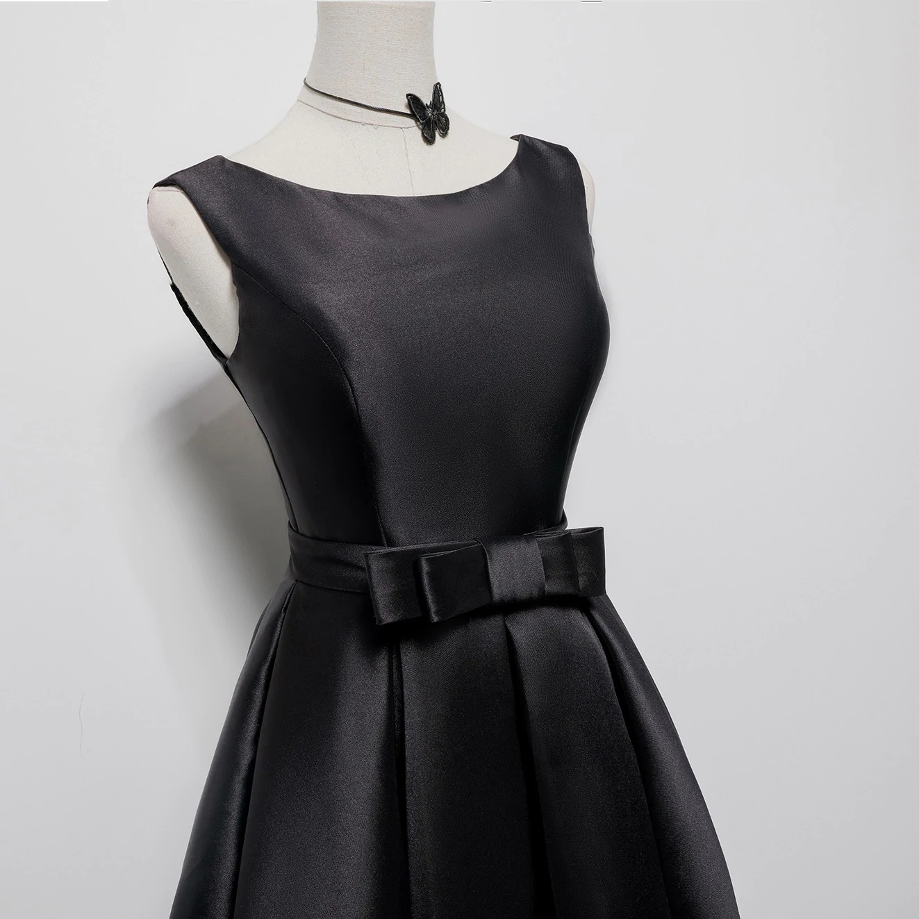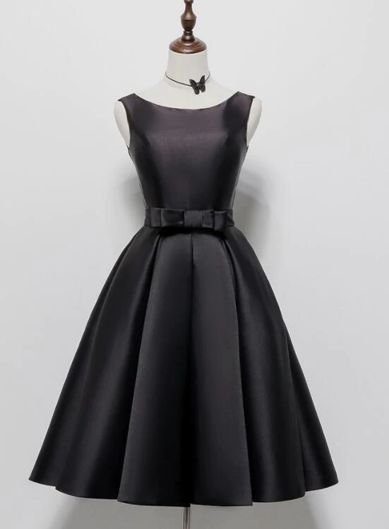 Black Satin Knee Length Round Neckline Party Dress, Black Short Prom Dress