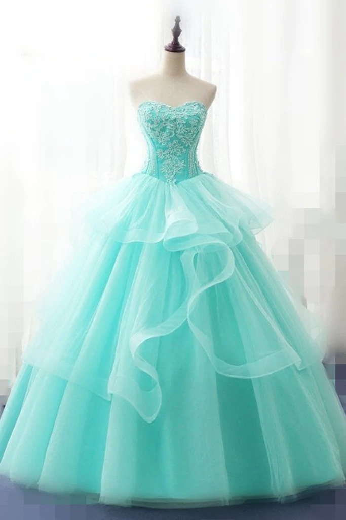 Mint Green Strapless Long Layered Quinceanera Dress, Sweet Prom Dress