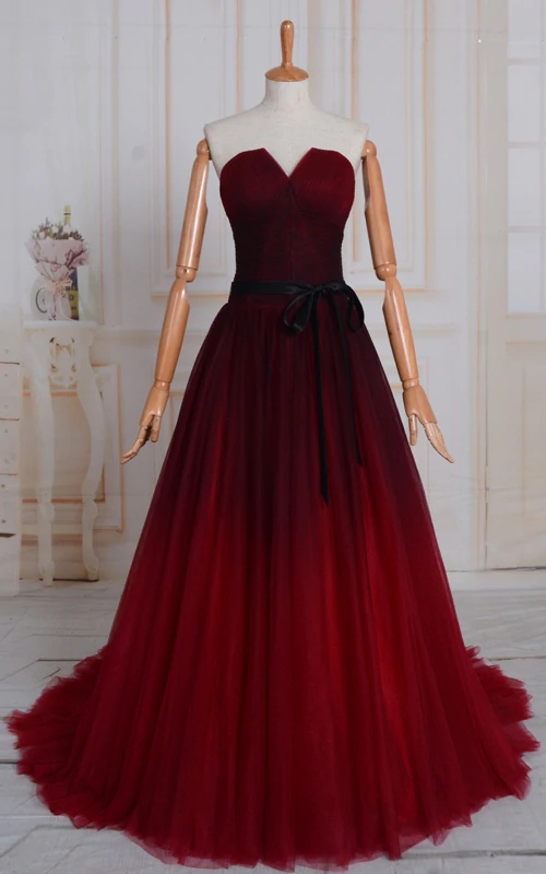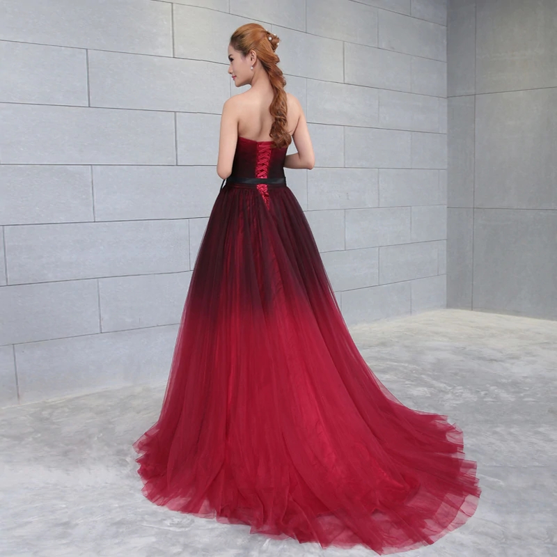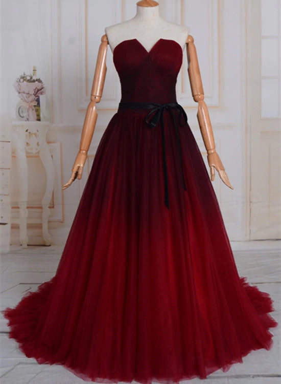Uniuqe Black and Red Gradient Tulle Prom Dress, A-line Long Evening Gown
