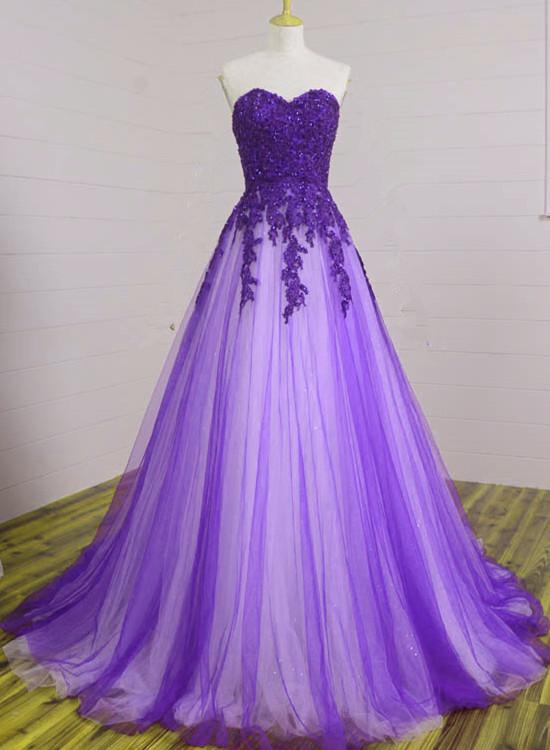 Purple Tulle Sweetheart Long Formal Gown, Beautiful Sweet Dress
