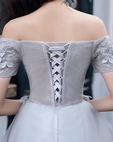 Tulle with Flower Lace Applique Part Dress, Off Shoulder Prom Dress
