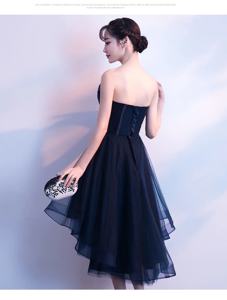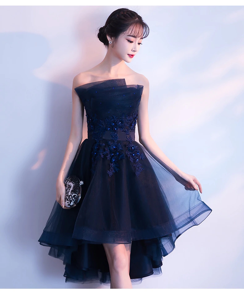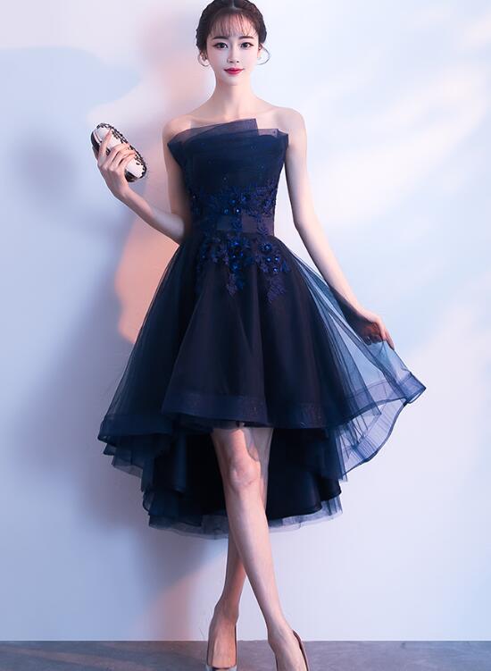 Fashionable Navy Blue High Low Homecoming Dress, Short Prom Dresses