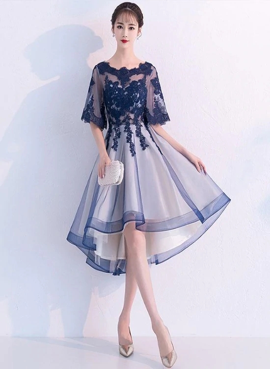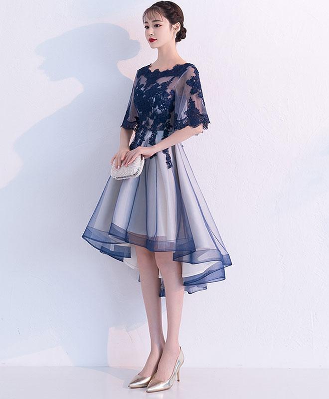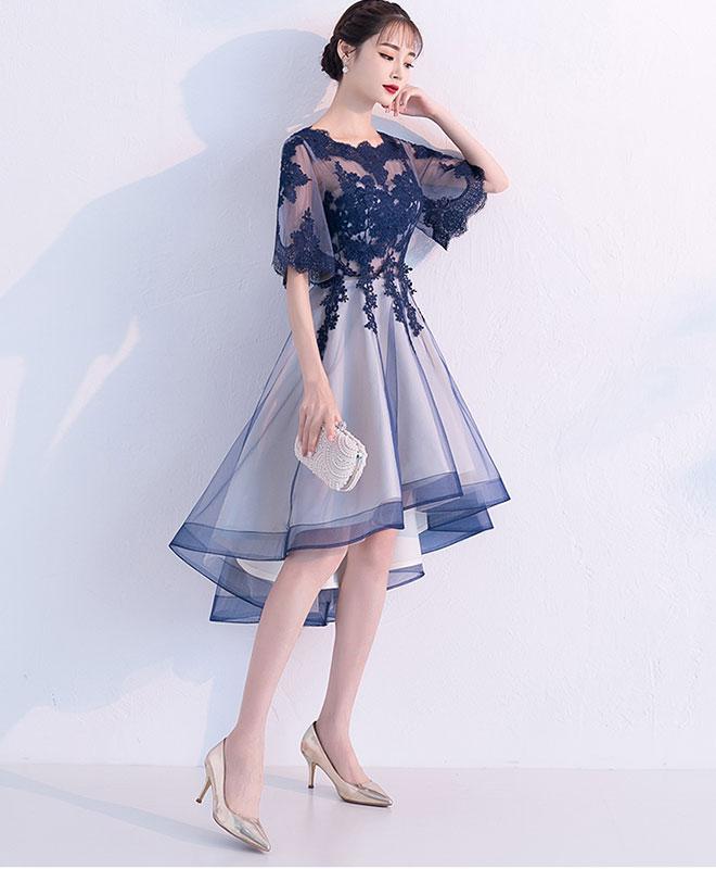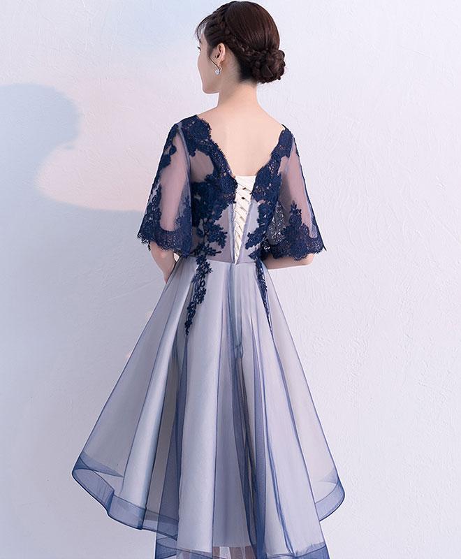 Lovely Blue High Low Lace Tulle Homecoming Dress, Blue Party Dress