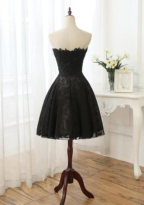 Black Sweetheart Lace and Beaded Homecoming Dress, Black Short Party Dress