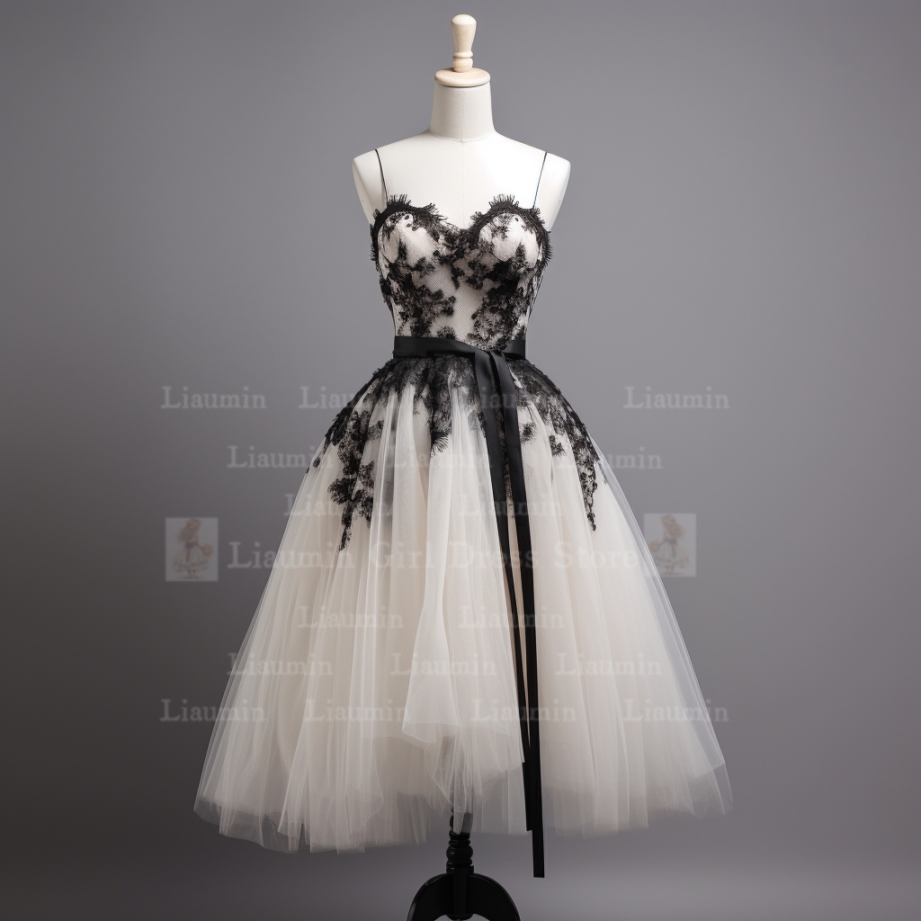 White Tulle and Black Lace Edge Applique Short Length Lace Up Evening Dress Formal Occasion Elagant Clohing Hand Made W1-1.2