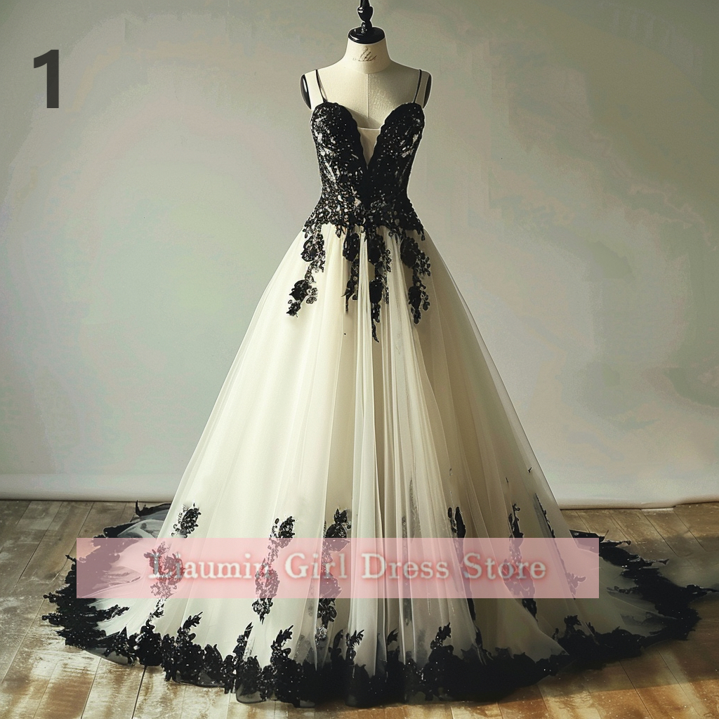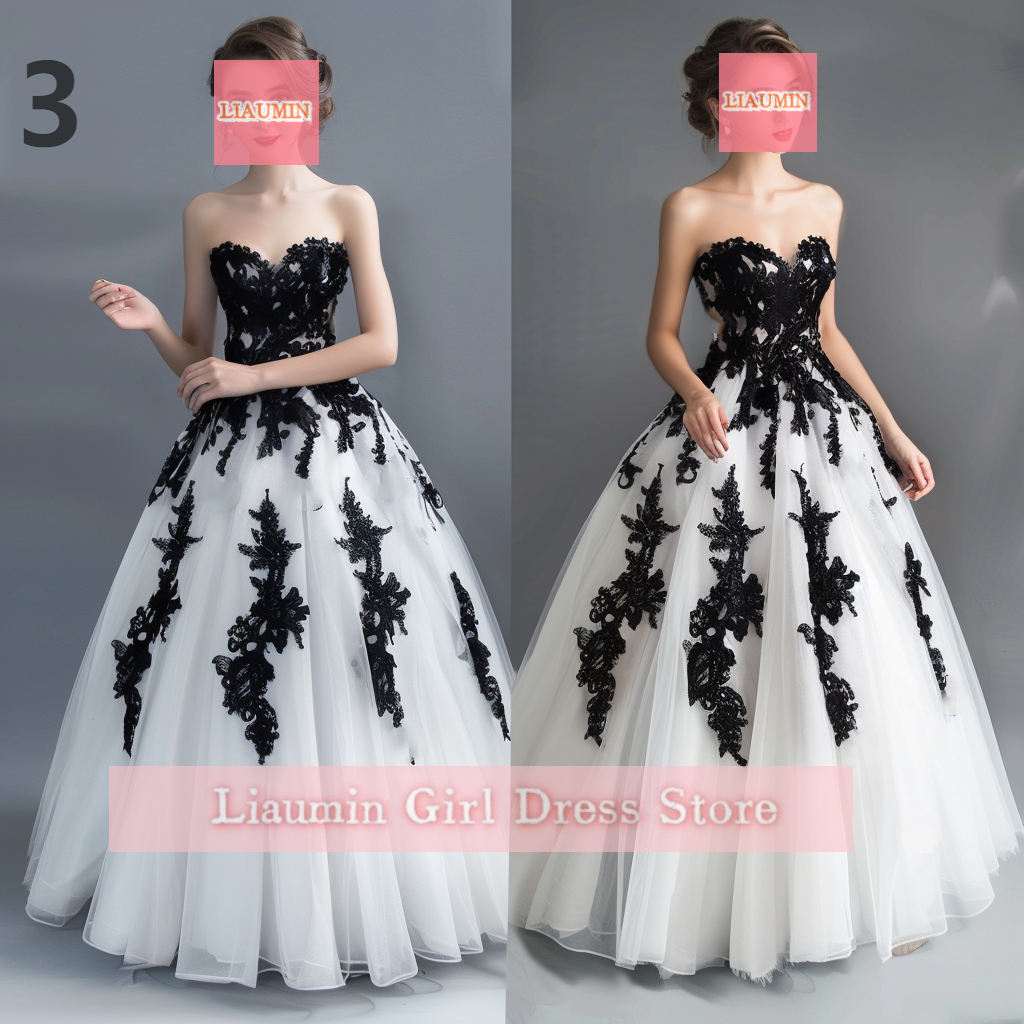 White Tulle and Black Applique Floor Length Lace Up Back Evening Dress Formal Occasion Elagant Clohing Hand Made Custom W11-1