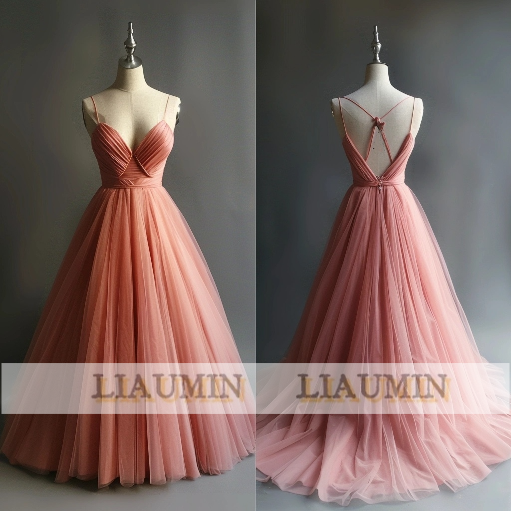 Pink V Neck Full Length Tull Prom Dress Evening Dress Hand Made A-1.1