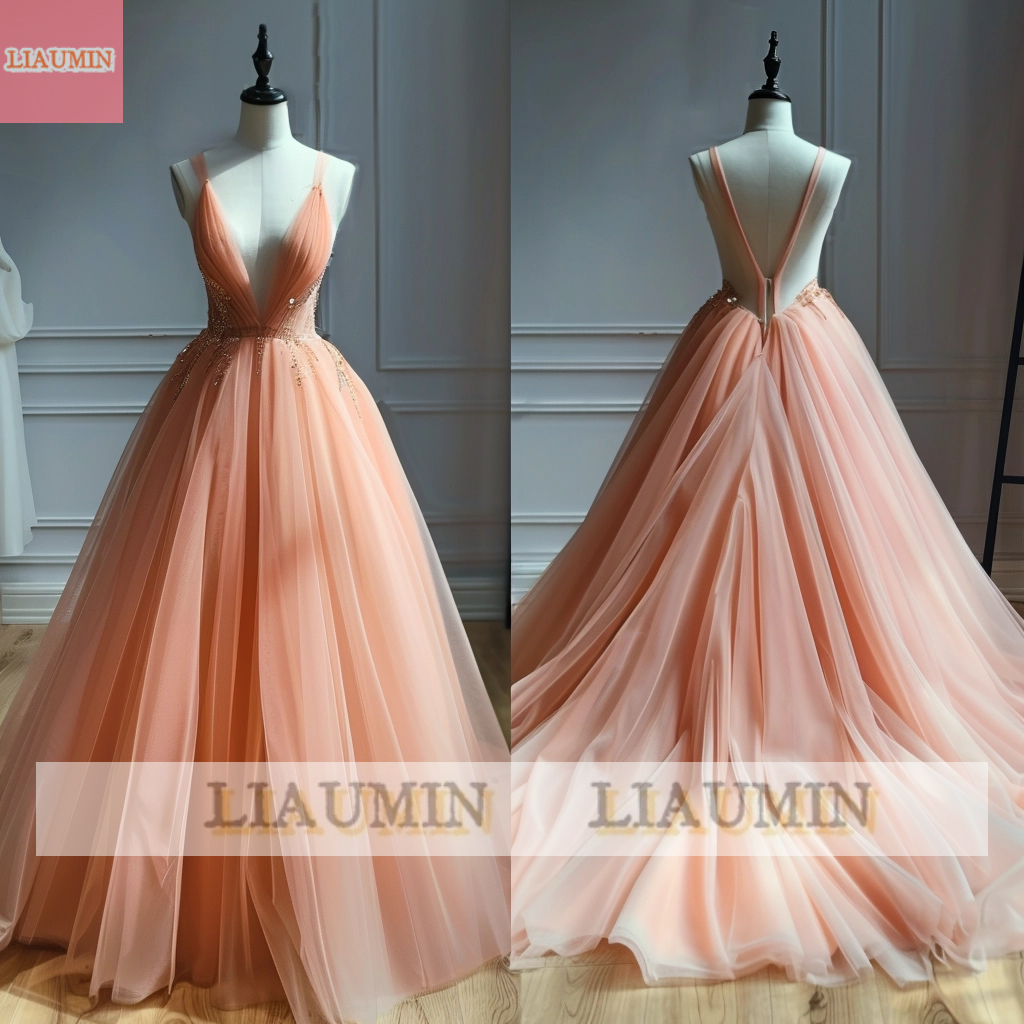 Pink V Neck Full Length Tull Prom Dress Evening Dress Hand Made W14-19.4